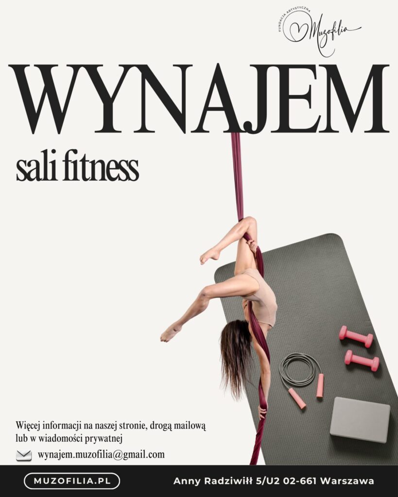 Oferujemy profesjonalną i komfortową salę fitness na wynajem na Mokotowie, idealną dla instruktorów oraz małych grup ćwiczeniowych.